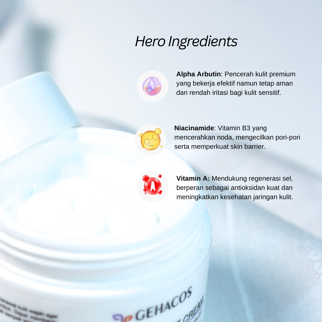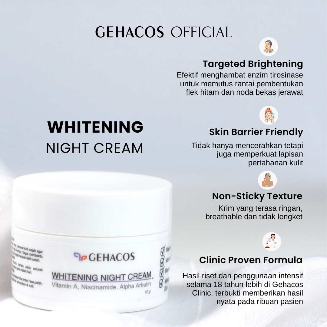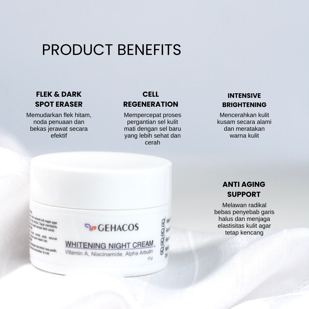 GEHACOS Whitening Night Cream, Alpha Arbutin, Vitamin A, Niacinamide Untuk Flek & Regenerasi Sel