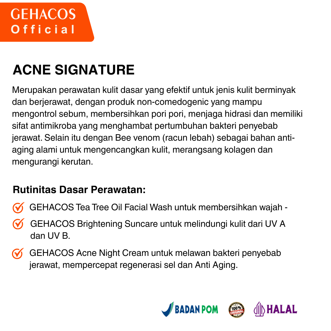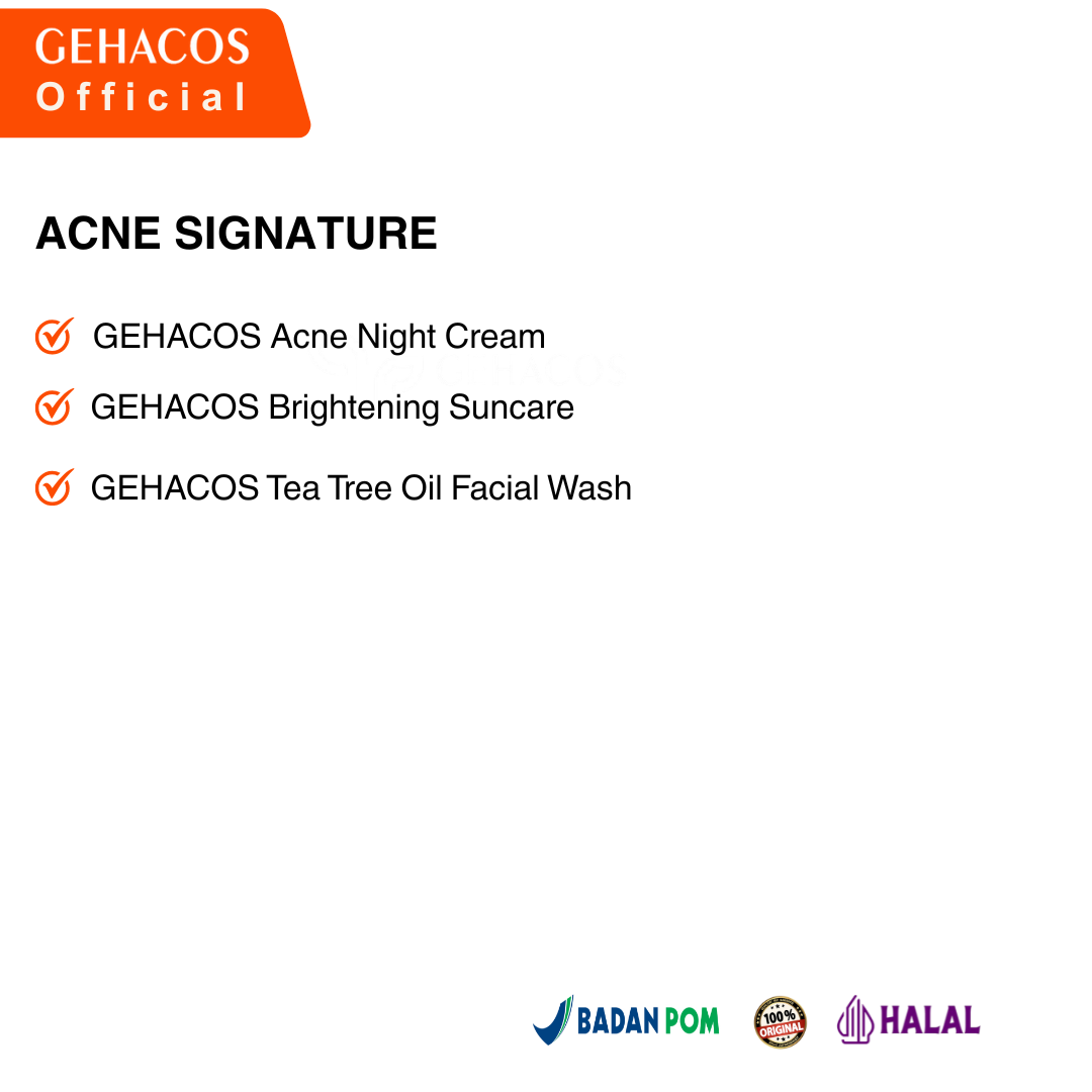 GEHACOS Acne Signature, Jerawat, Anti Bacteria l, Pencerah, Anti Aging, Regenerasi Sel, SPF49+ PA+++